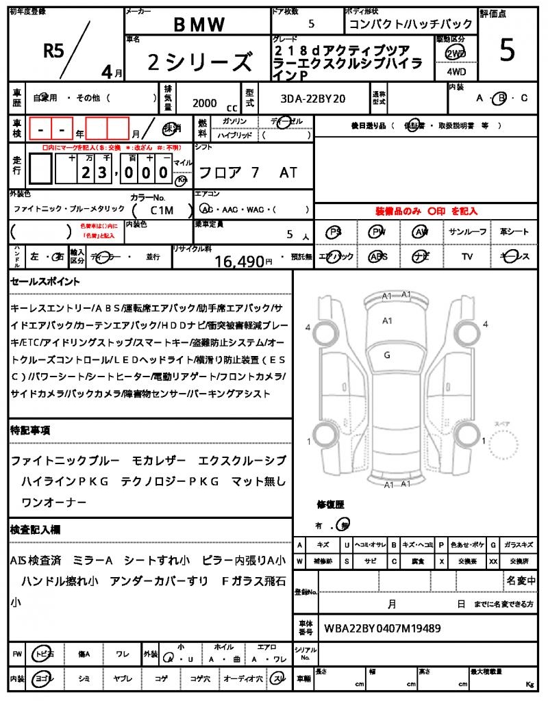 | VIN/Serial No. | WBA22BY0407M19489 |