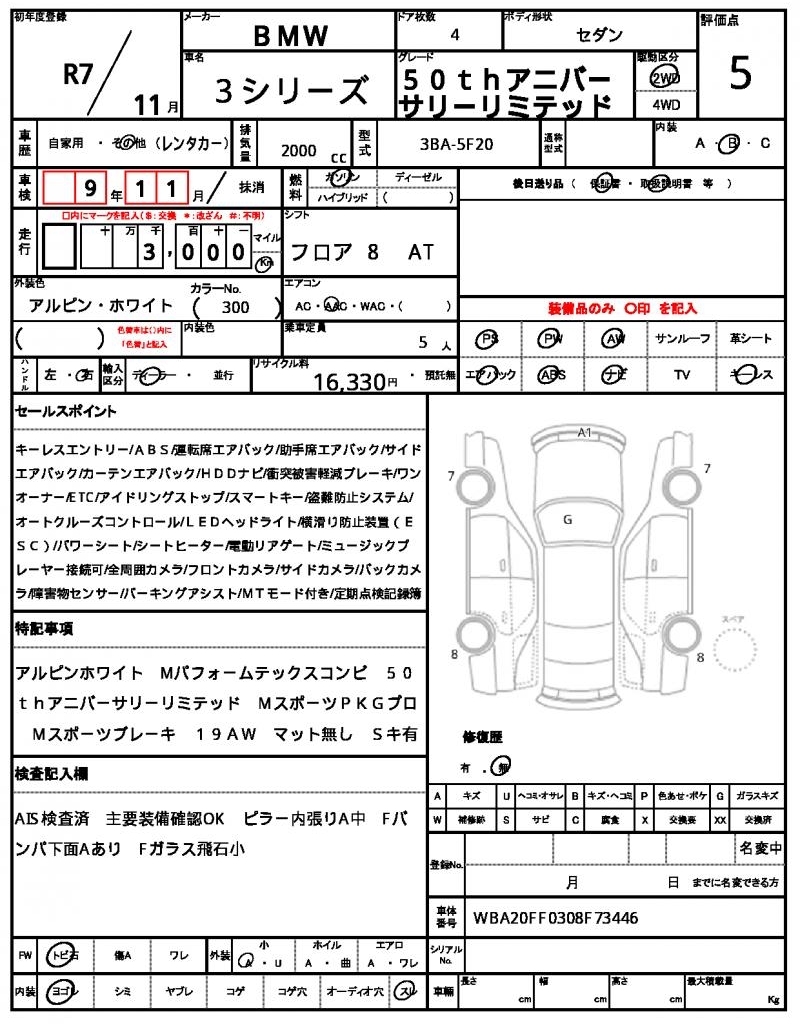 VIN/Serial No. WBA20FF0308F73446