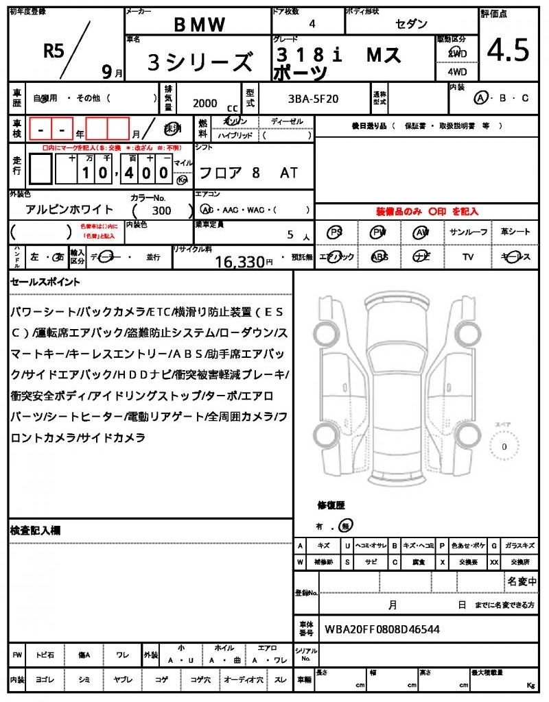 VIN/Serial No. WBA20FF0808D46544