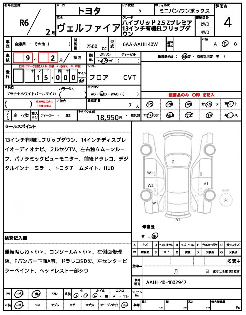 | VIN/Serial No. | AAHH40-4002947 |