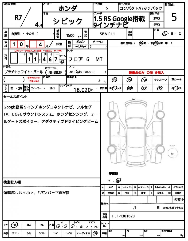 | Model code | 5BA-FL1 |