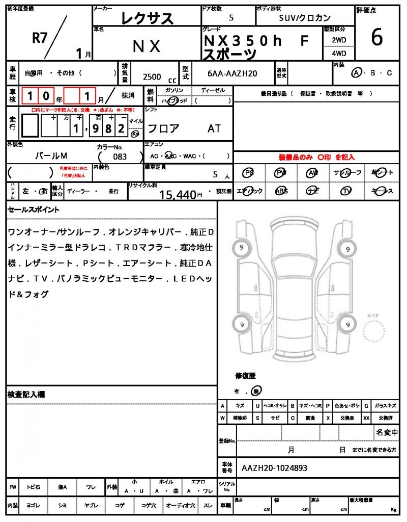| VIN/Serial No. | AAZH20-1024893 |