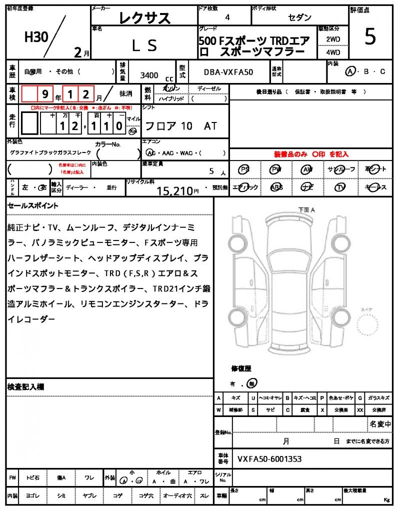 | VIN/Serial No. | VXFA50-6001353 |