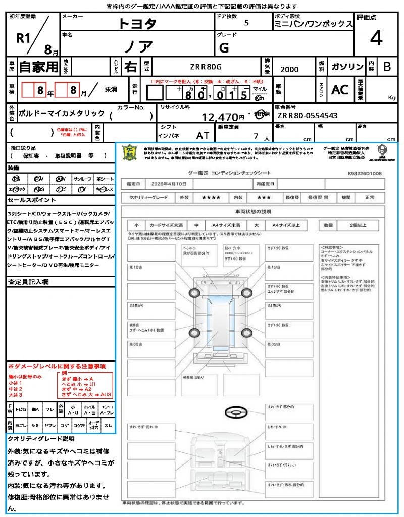 | VIN/Serial No. | ZRR80-0554543 |
