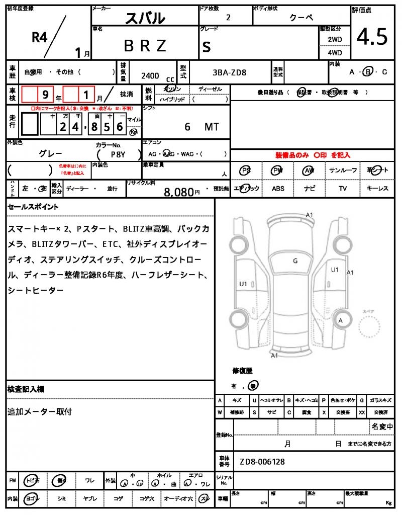 Model code 3BA-ZD8