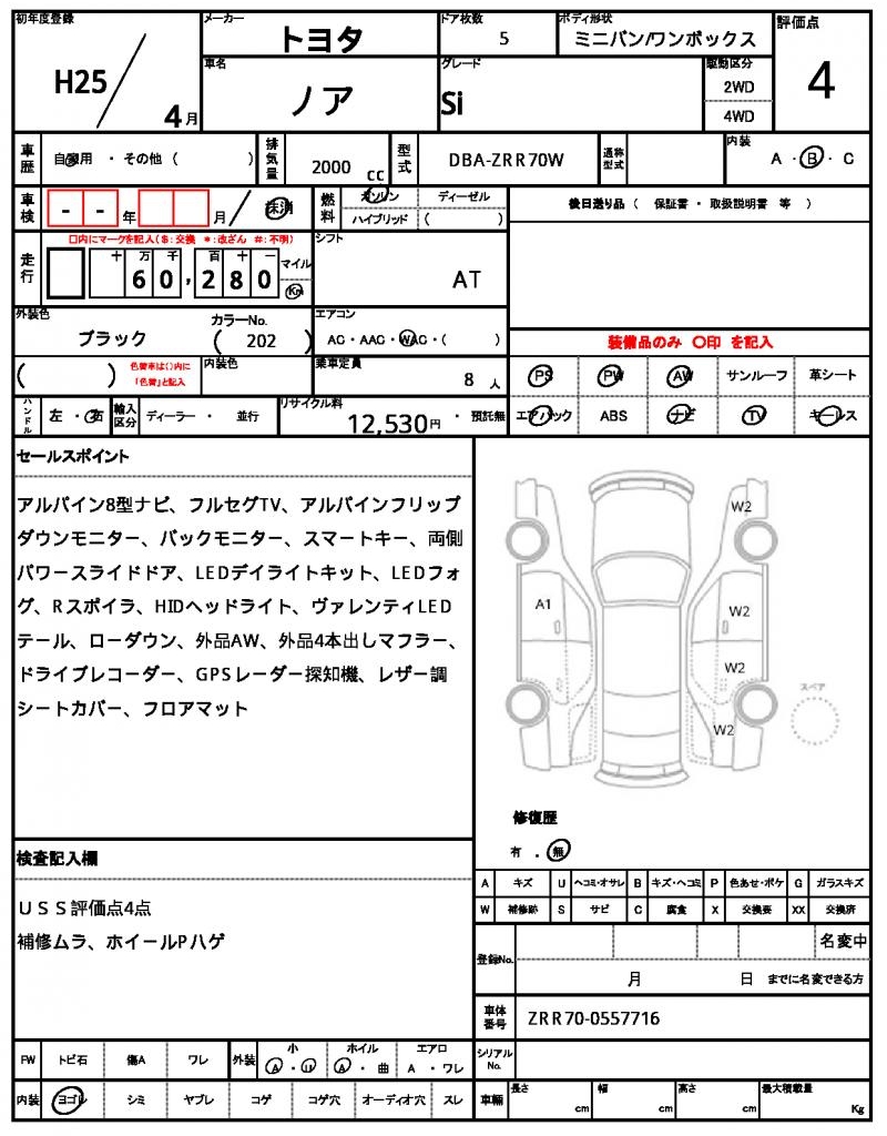 Model code DBA-ZRR70W