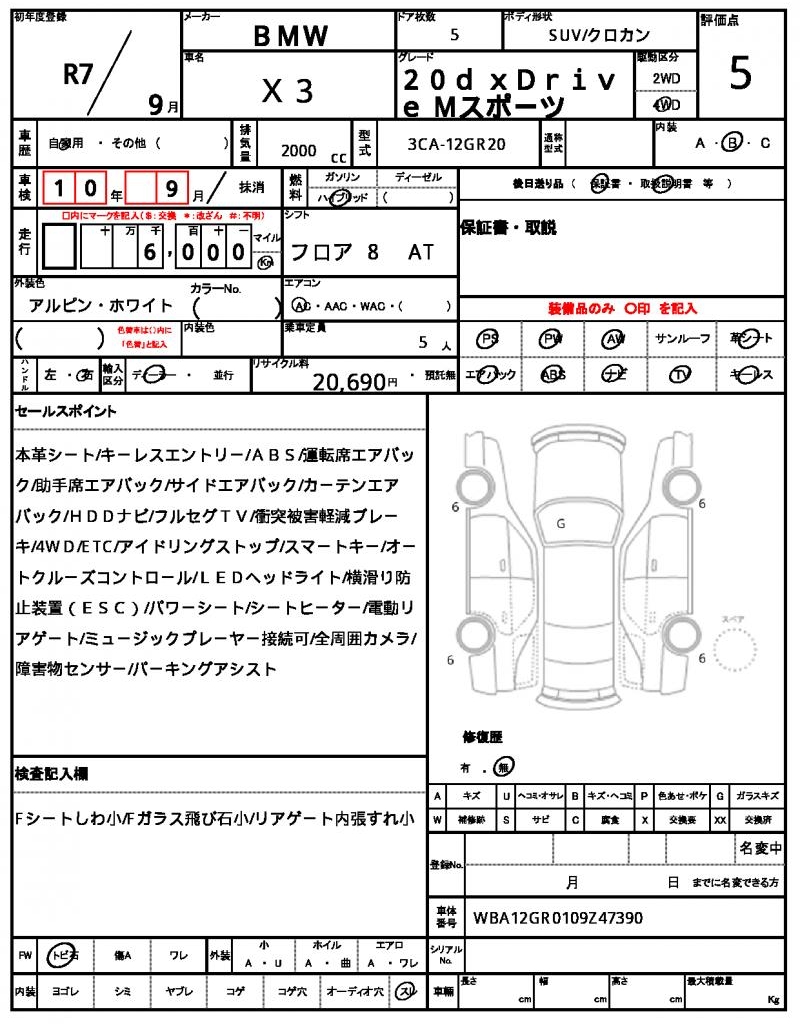 | VIN/Serial No. | WBA12GR0109Z47390 |