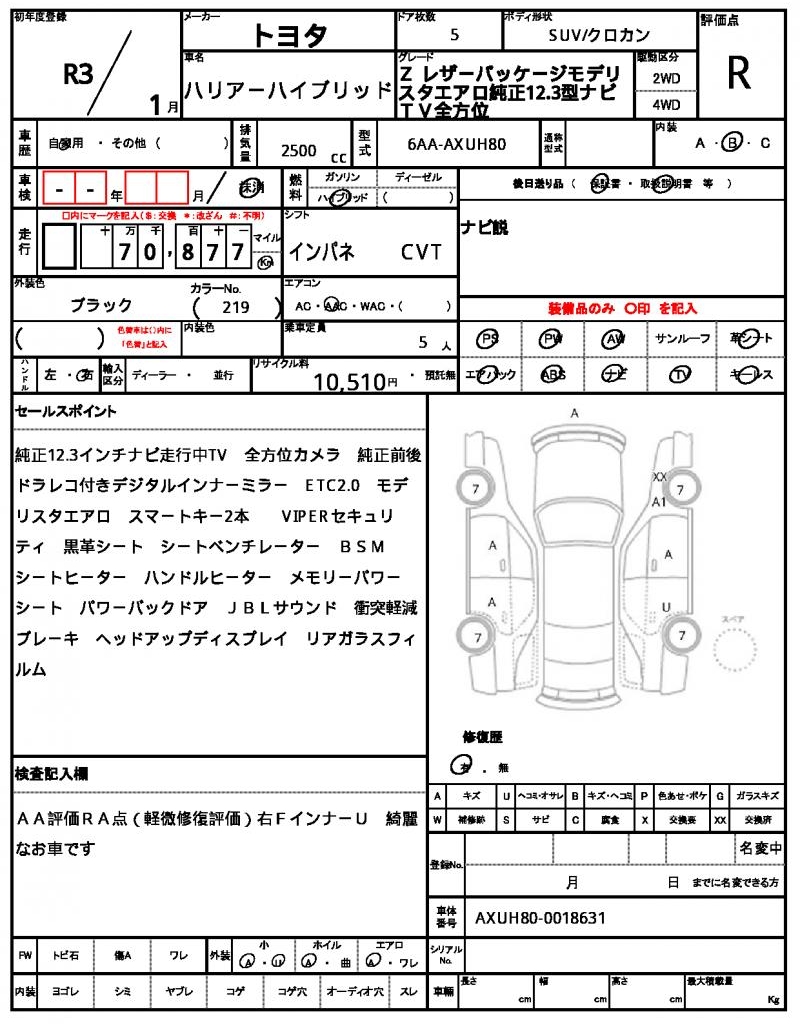 | VIN/Serial No. | AXUH80-0018631 |