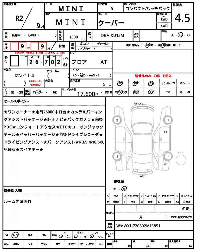 VIN/Serial No. WMWXU720502M13851