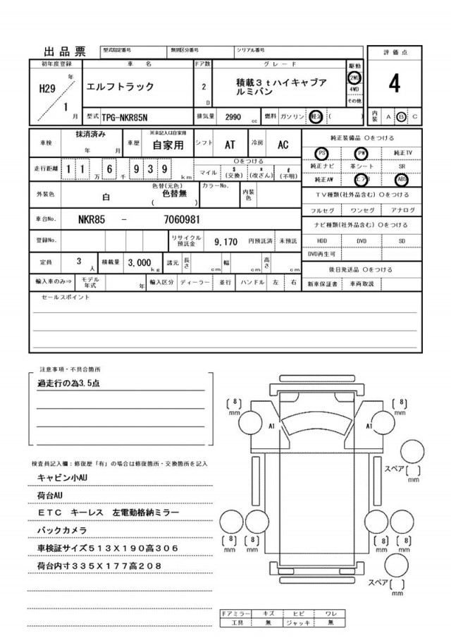 | VIN/Serial No. | NKR85-7060981 |