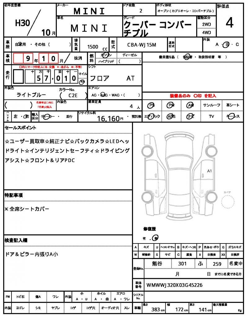 | VIN/Serial No. | WMWWJ320X03G45226 |