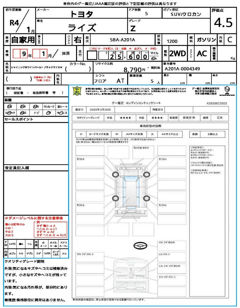 VIN/Serial No. A201A-0004349