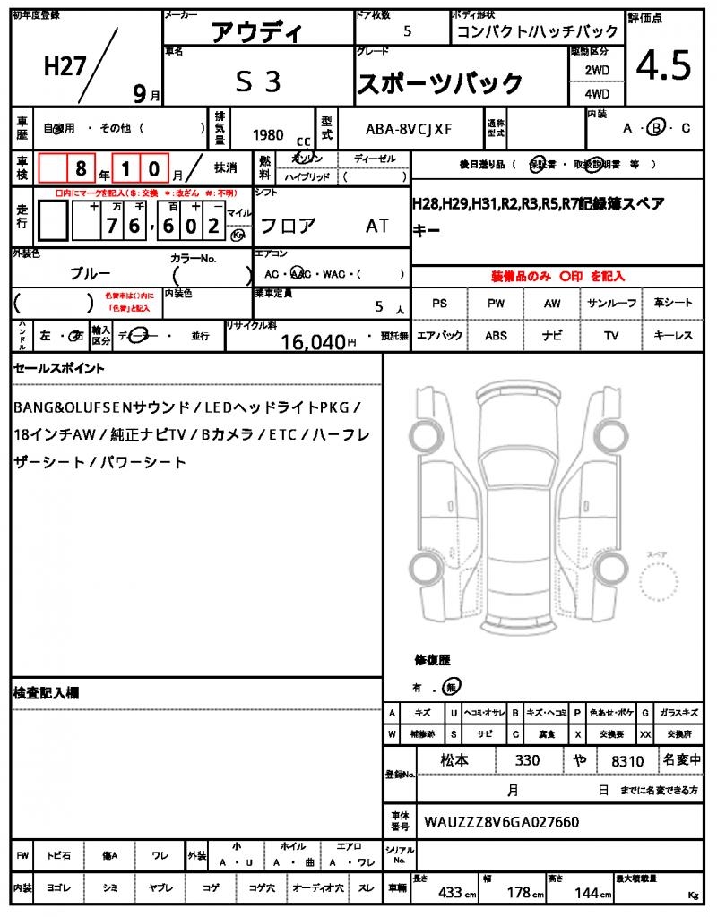 | VIN/Serial No. | WAUZZZ8V6GA027660 |