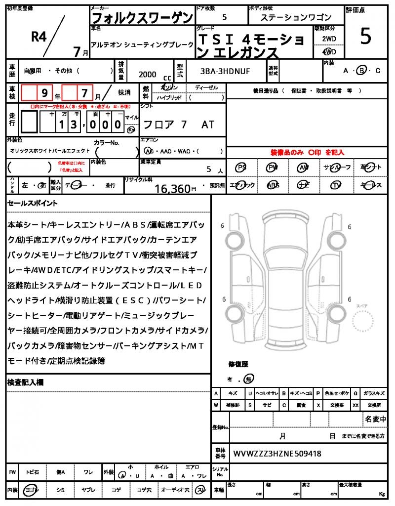 | VIN/Serial No. | WVWZZZ3HZNE509418 |