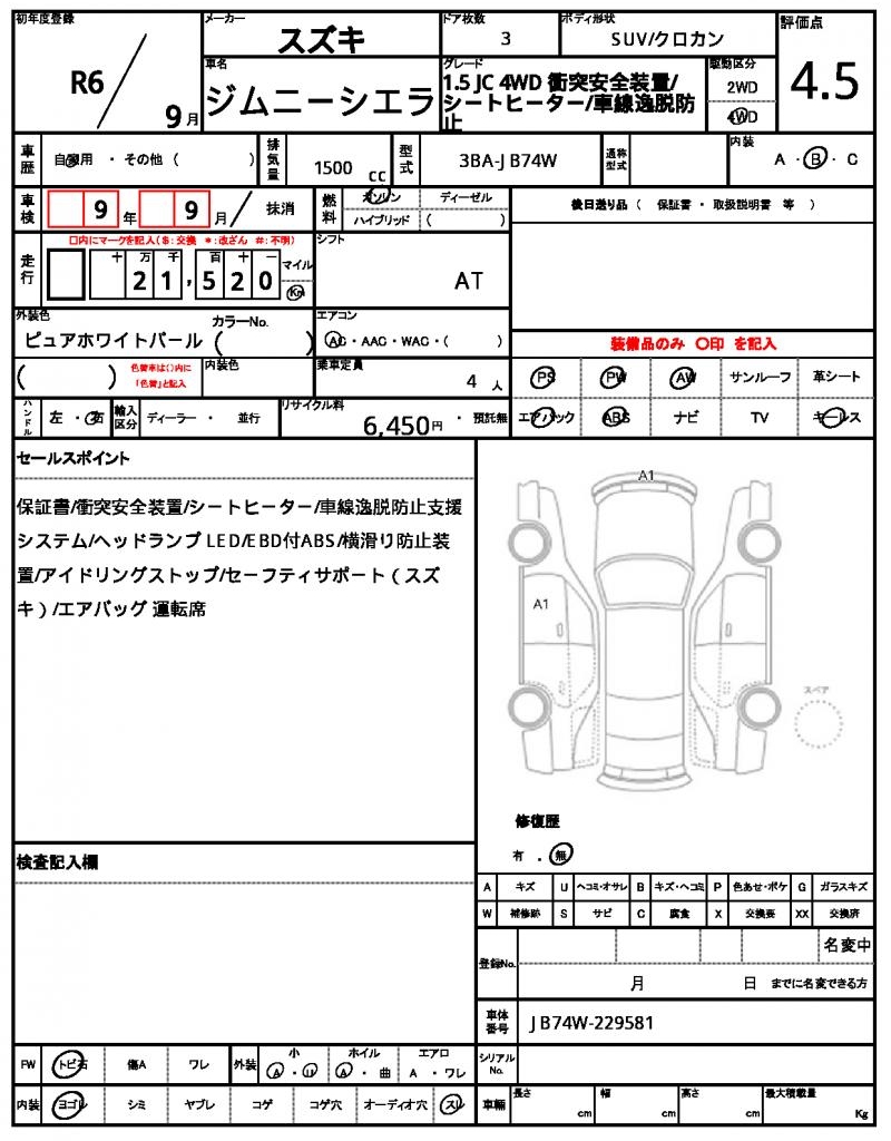 | VIN/Serial No. | JB74W-229581 |
