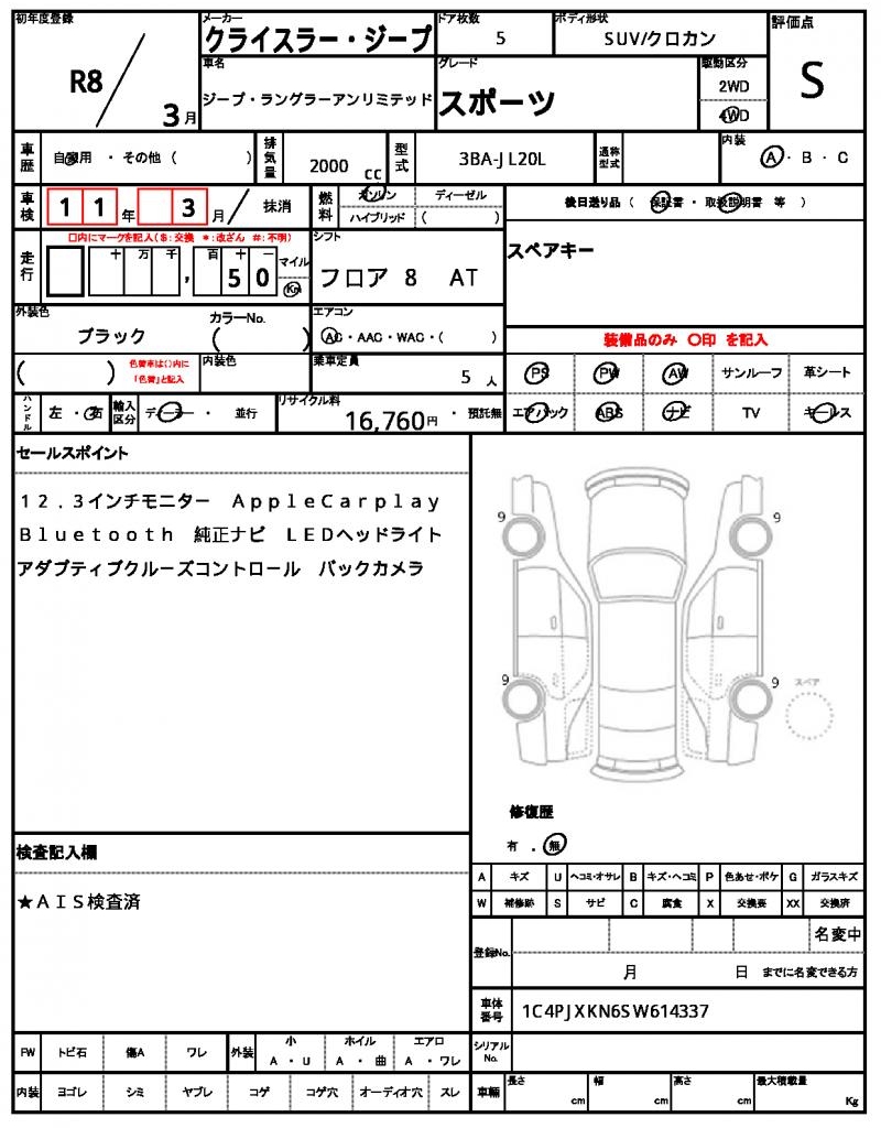 | VIN/Serial No. | 1C4PJXKN6SW614337 |