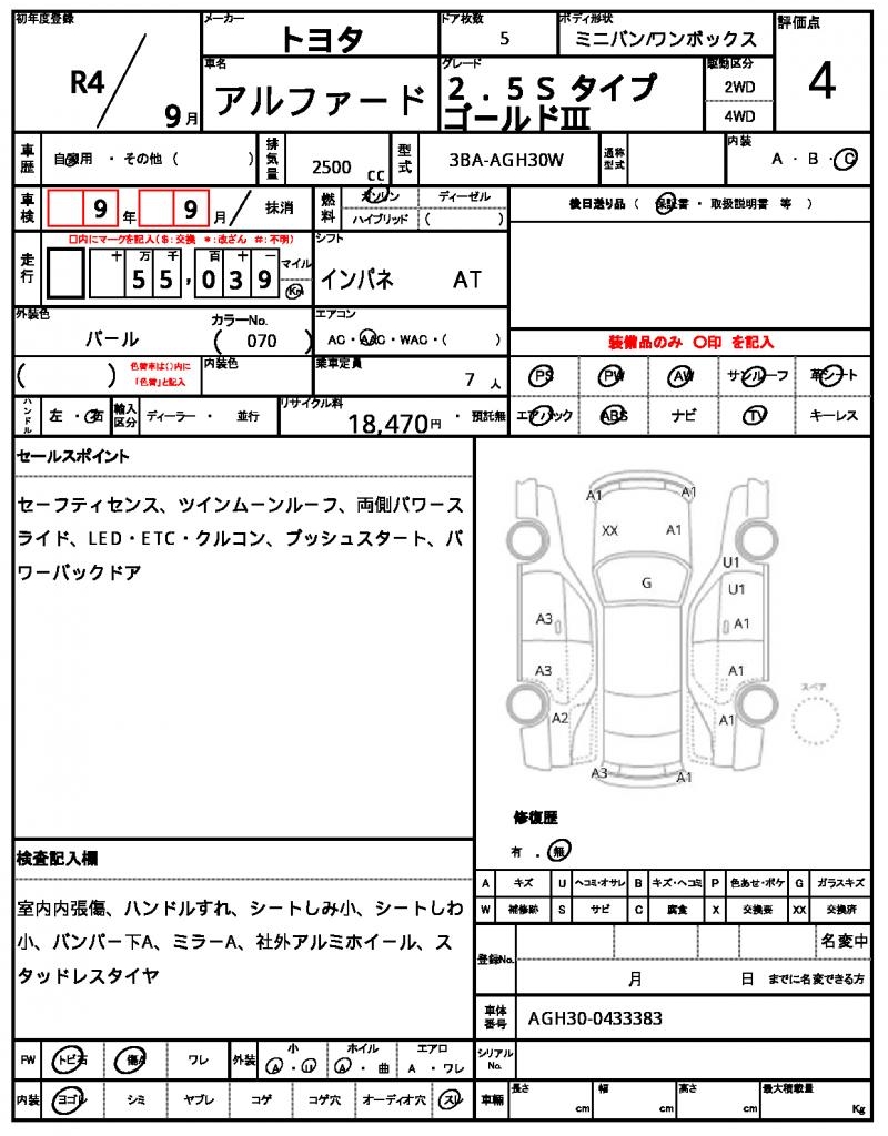 | VIN/Serial No. | AGH30-0433383 |