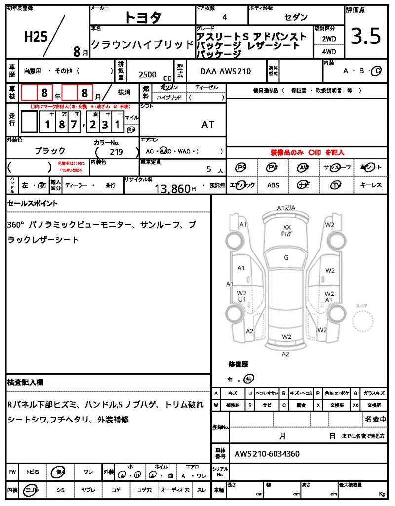 | VIN/Serial No. | AWS210-6034360 |