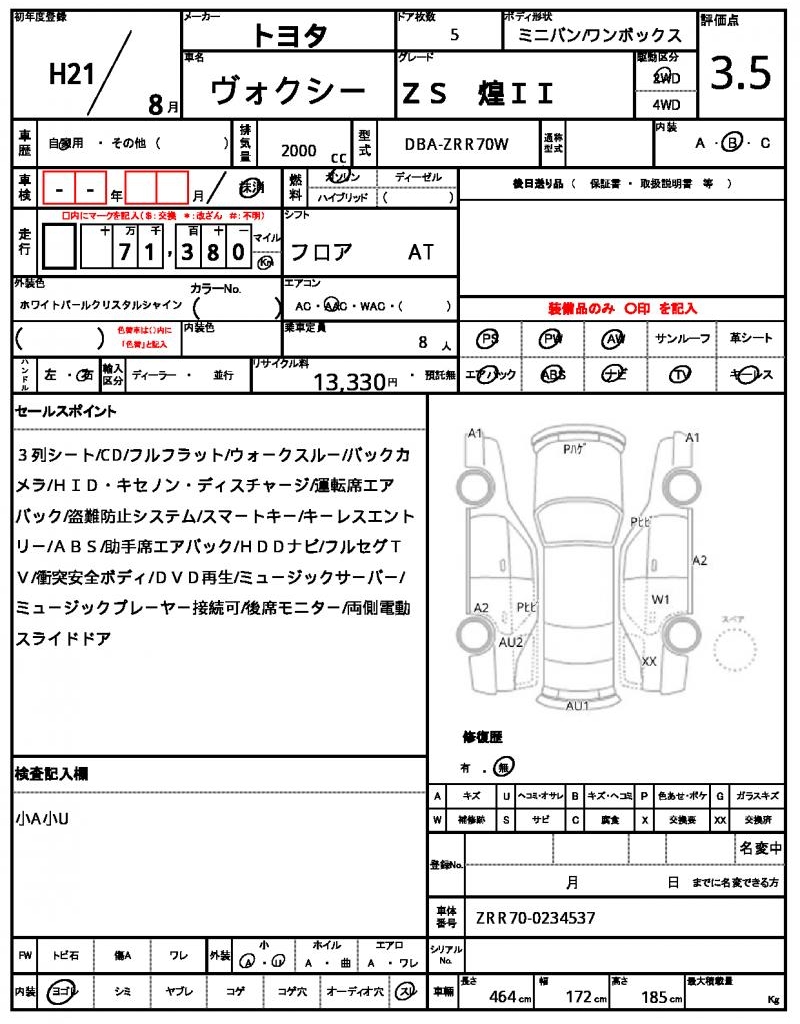 Model code DBA-ZRR70W