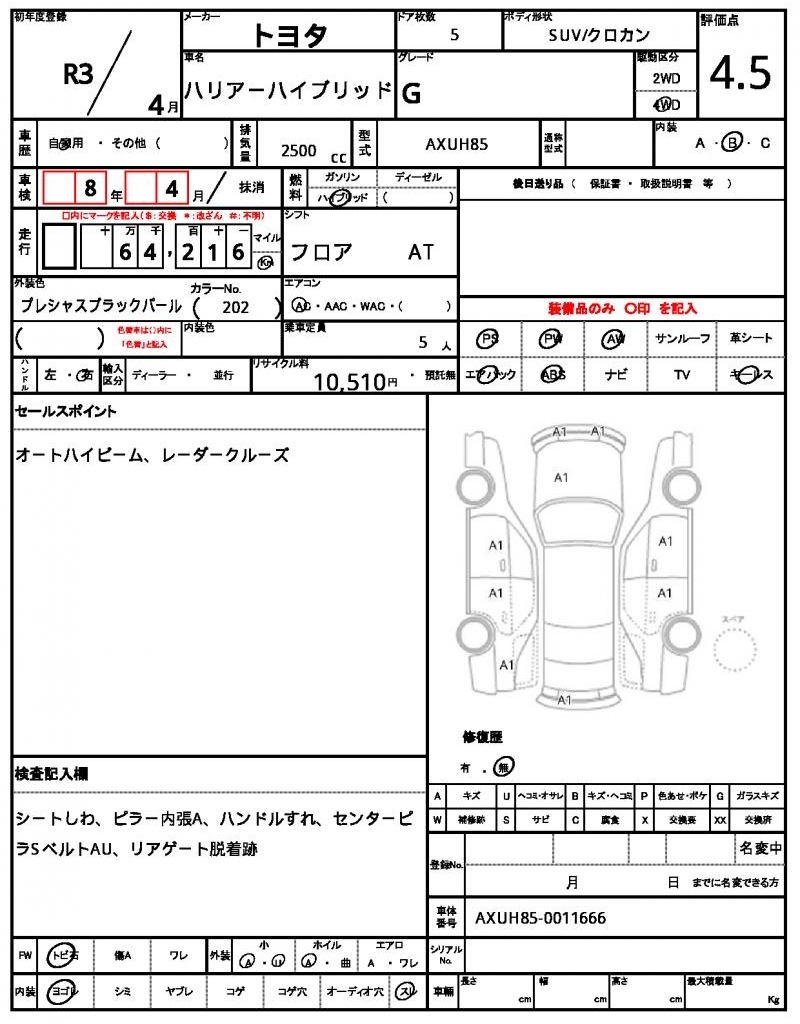 2021 TOYOTA HARRIER HYBRID