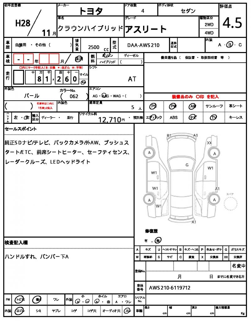 | VIN/Serial No. | AWS210-6119712 |