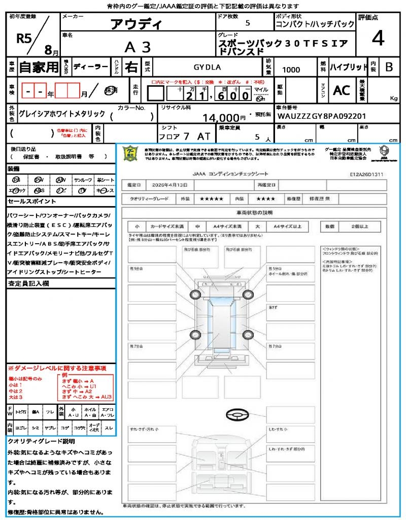 | VIN/Serial No. | WAUZZZGY8PA092201 |