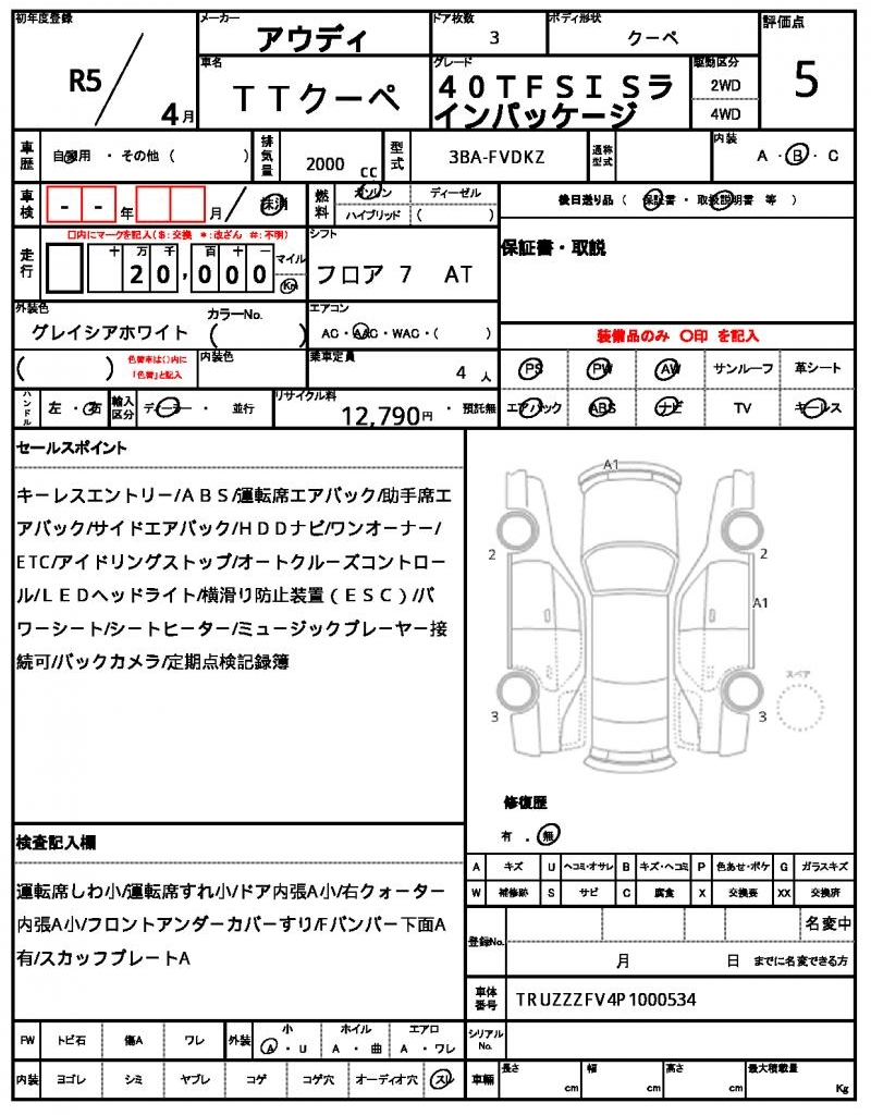 | VIN/Serial No. | TRUZZZFV4P1000534 |