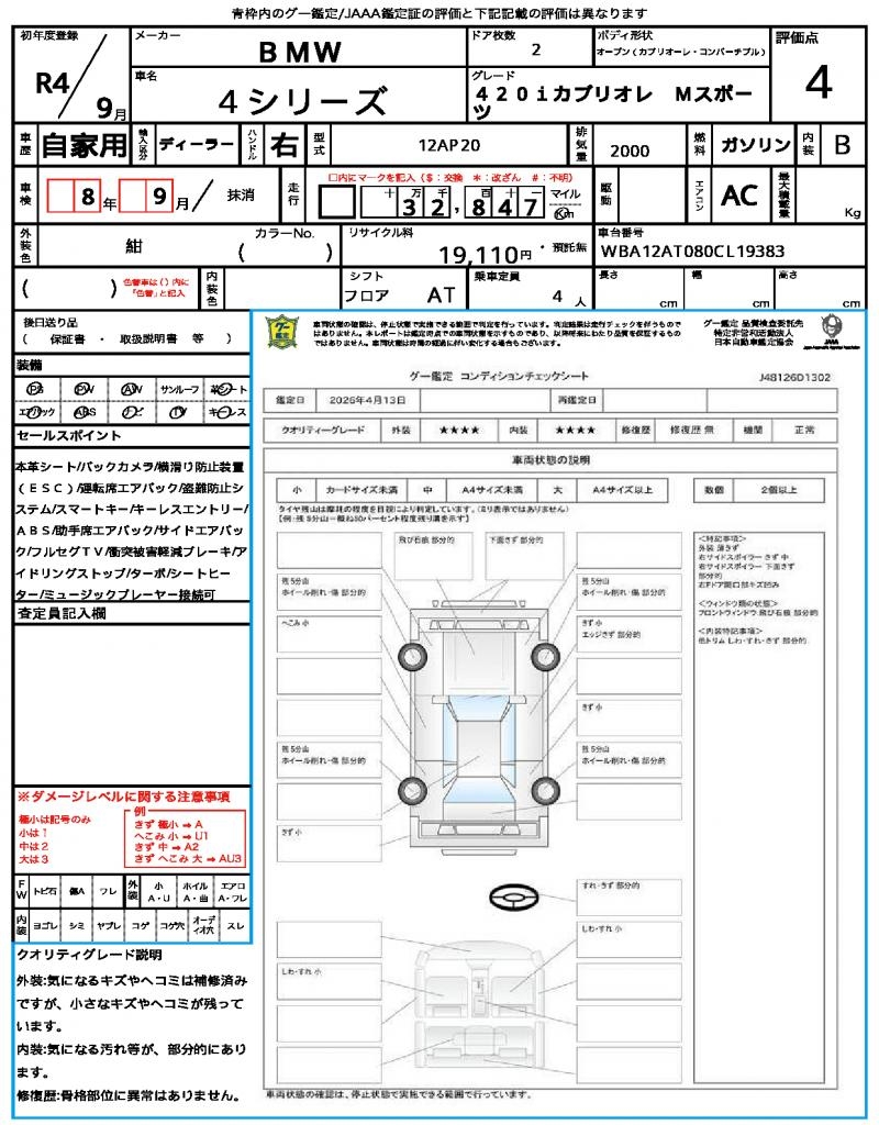 | VIN/Serial No. | WBA12AT080CL19383 |
