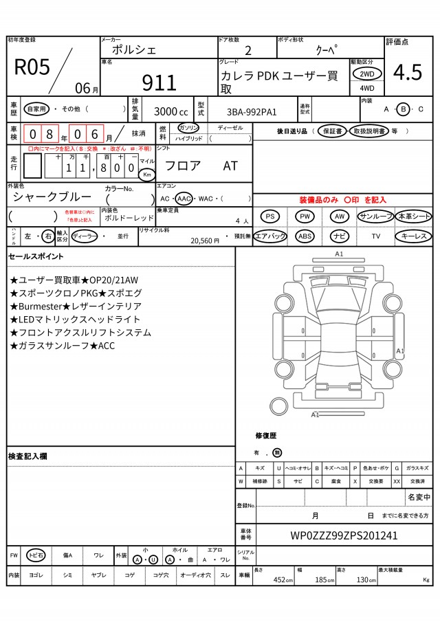 | VIN/Serial No. | WP0ZZZ99ZPS201241 |