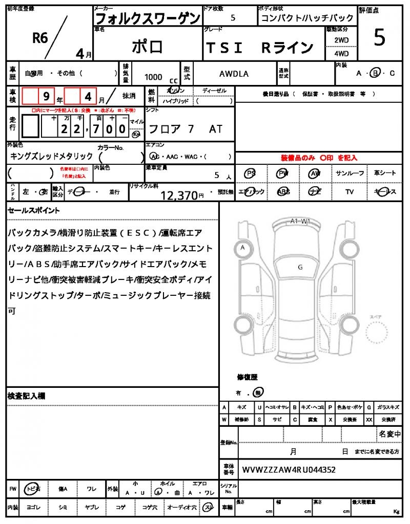 | VIN/Serial No. | WVWZZZAW4RU044352 |