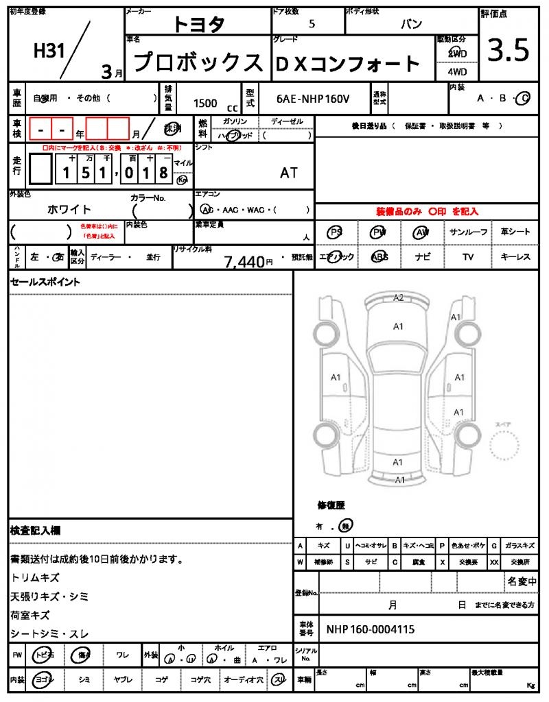 | VIN/Serial No. | NHP160-0004115 |