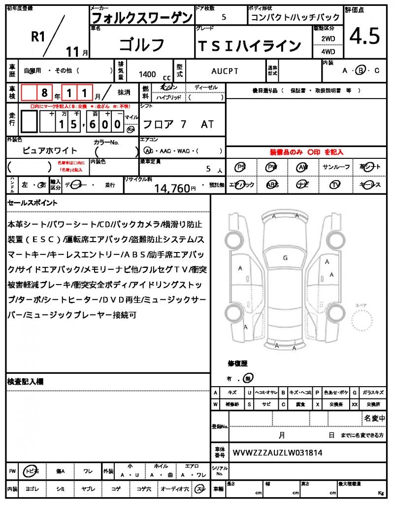| VIN/Serial No. | WVWZZZAUZLW031814 |