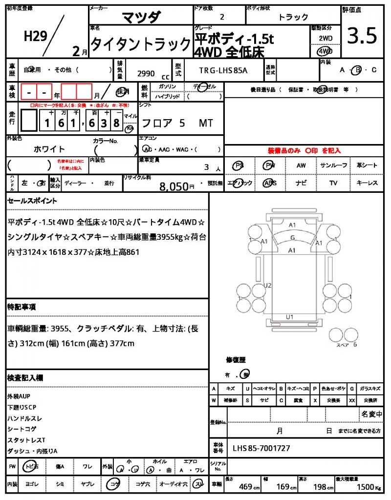 | VIN/Serial No. | LHS85-7001727 |