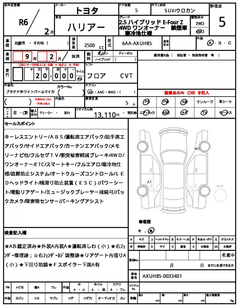 | VIN/Serial No. | AXUH85-0033401 |