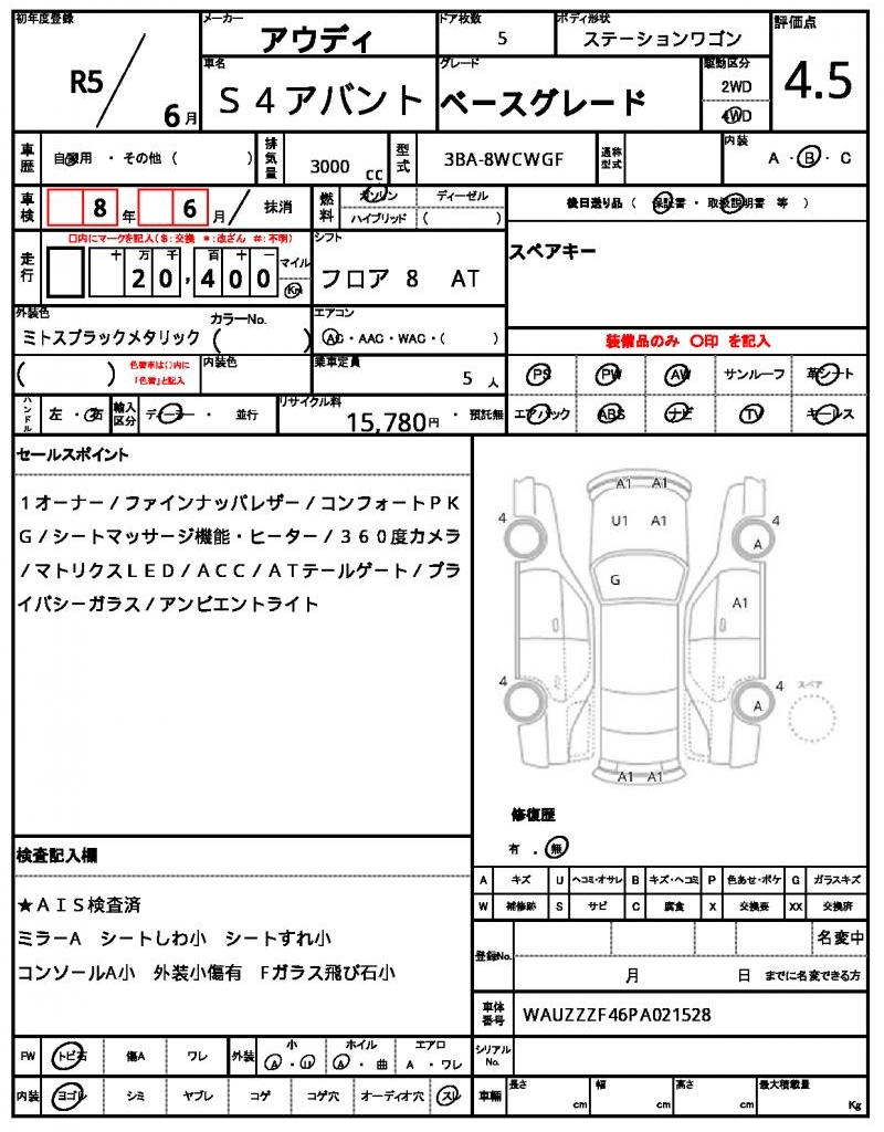 | VIN/Serial No. | WAUZZZF46PA021528 |