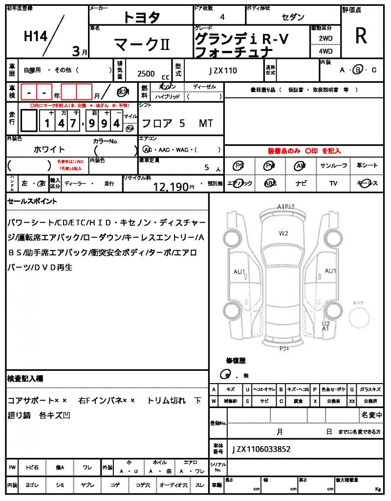| VIN/Serial No. | JZX1106033852 |