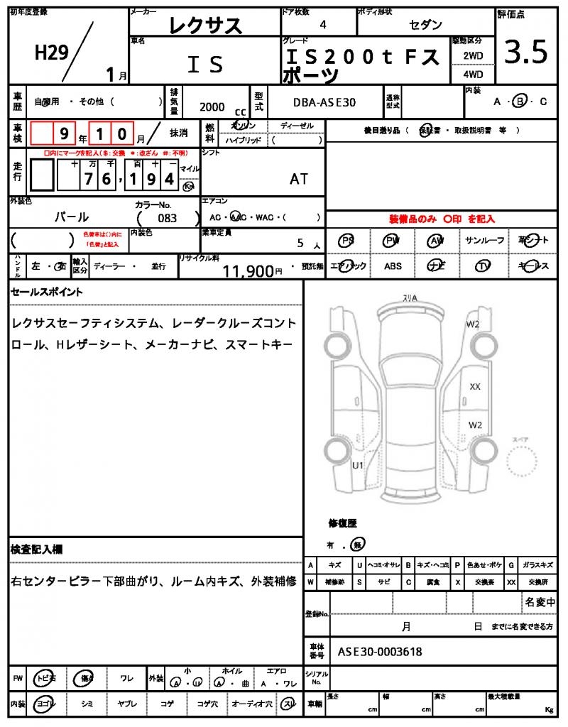 | VIN/Serial No. | ASE30-0003618 |
