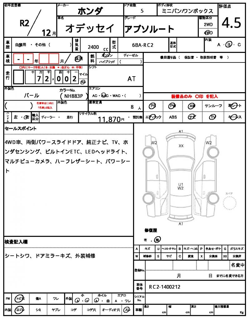 | VIN/Serial No. | RC2-1400212 |