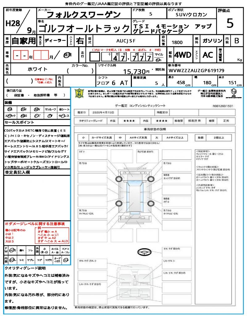 | VIN/Serial No. | WVWZZZAUZGP619179 |