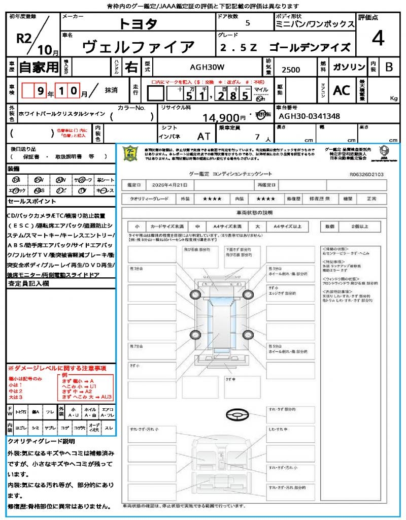 | VIN/Serial No. | AGH30-0341348 |