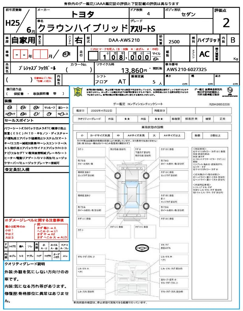 | VIN/Serial No. | AWS210-6027325 |