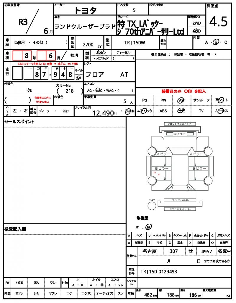 | VIN/Serial No. | TRJ150-0129493 |