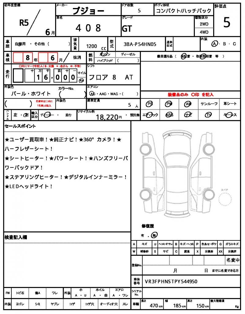 | VIN/Serial No. | VR3FPHNSTPY544950 |
