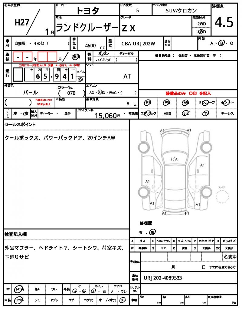 | VIN/Serial No. | URJ202-4089533 |