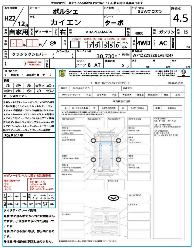 | VIN/Serial No. | WP1ZZZ92ZBLA84247 |