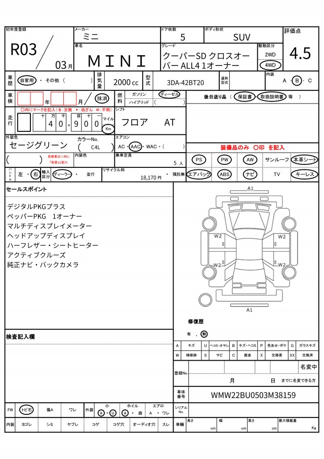 | VIN/Serial No. | WMW22BU0503M38159 |