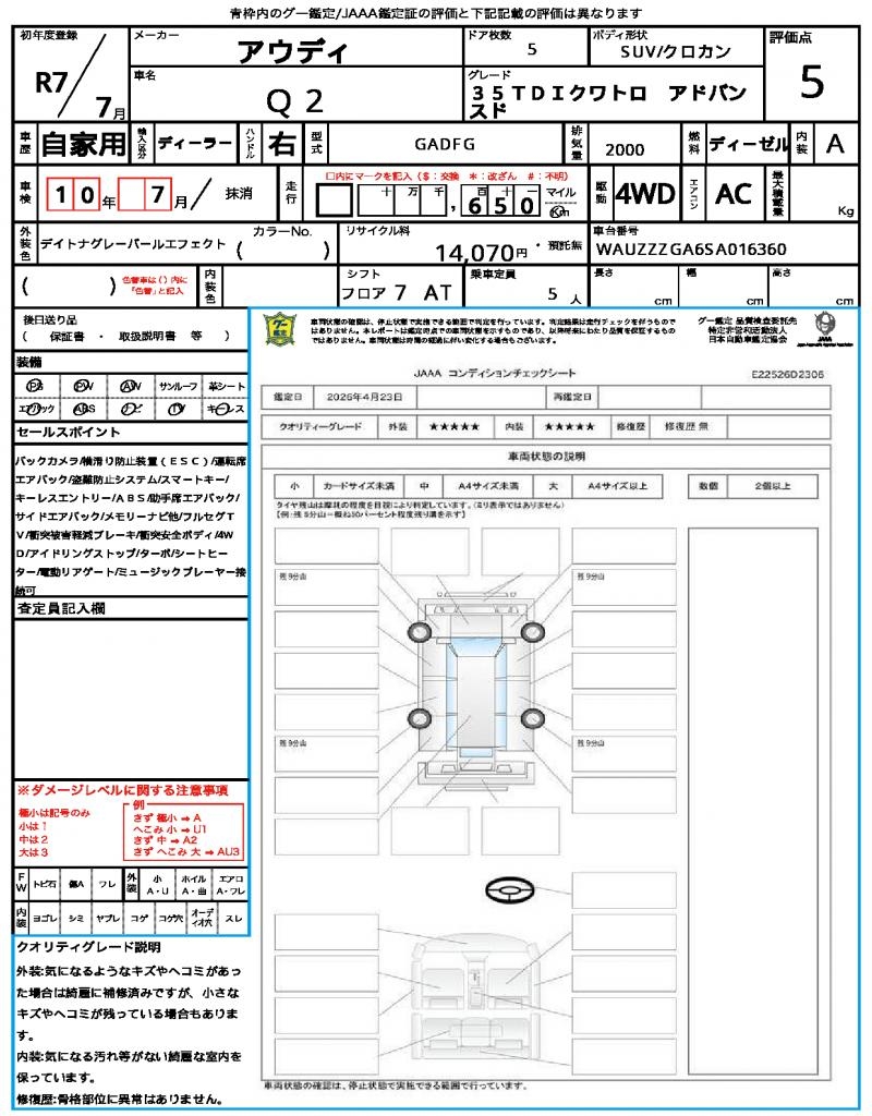 | VIN/Serial No. | WAUZZZGA6SA016360 |