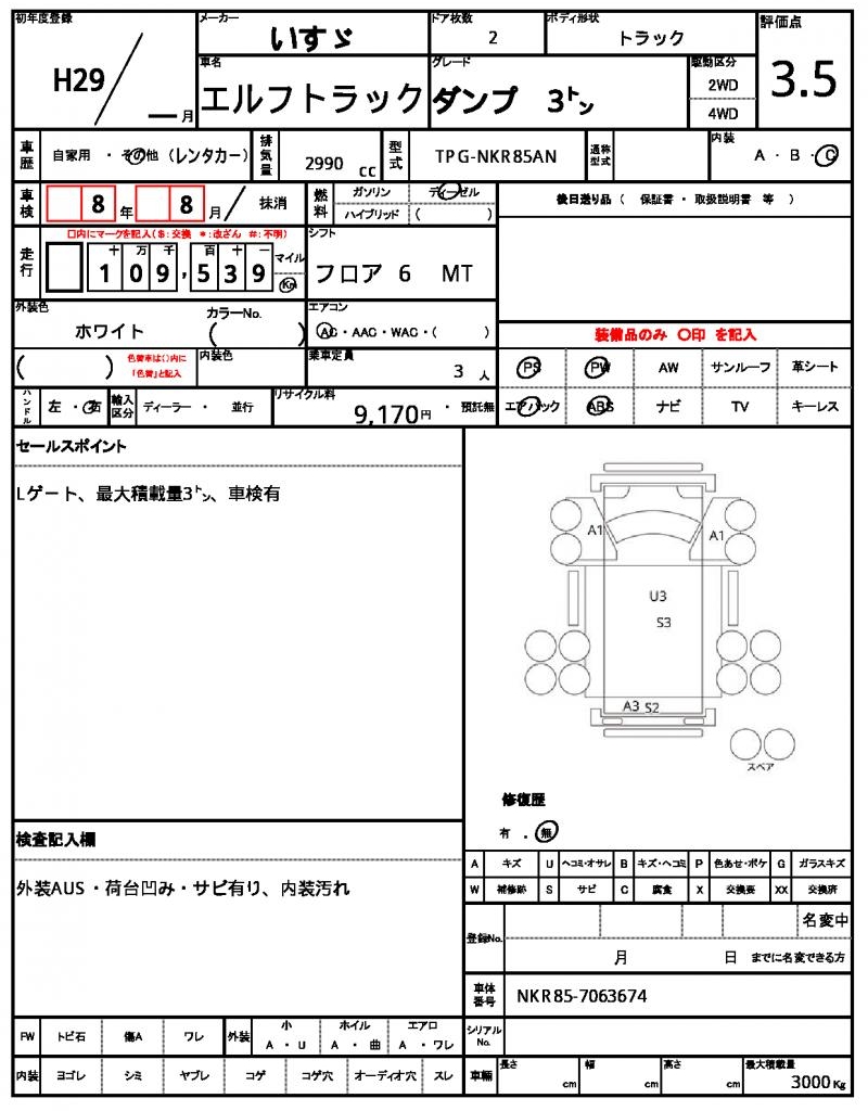 | VIN/Serial No. | NKR85-7063674 |