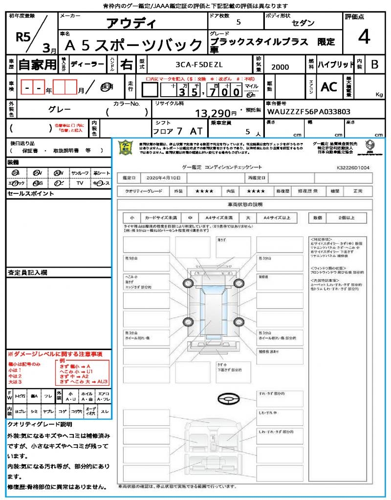 | VIN/Serial No. | WAUZZZF56PA033803 |